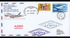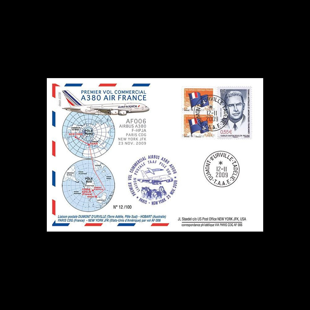 N°A380-90T3 : Pli TAAF voyagé sur A380 F-HPJA '1er vol commercial AF006 Paris CDG - New York JFK 23.11.09'