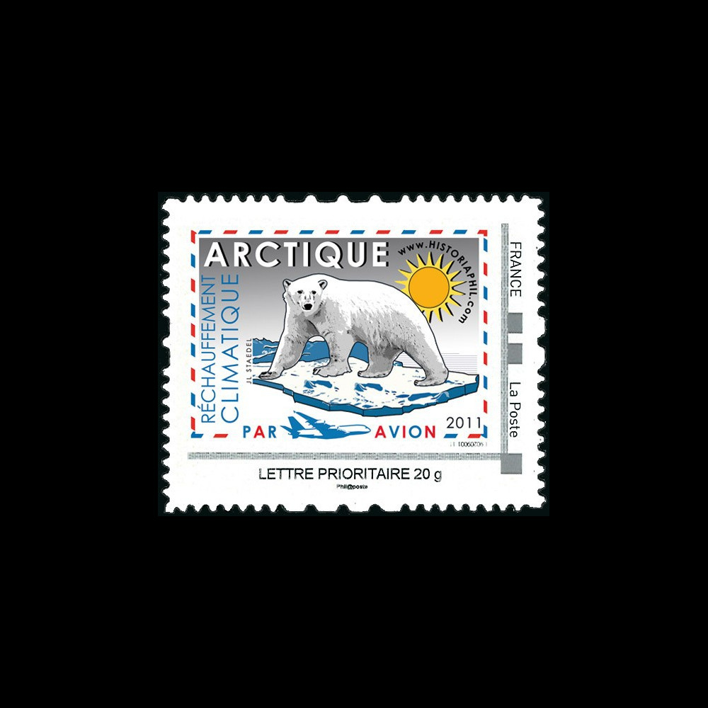 N°A380-130N : 1 valeur France Timbre-poste personnalisé (TPP) Lettre Prioritaire 20g “Réchauffement climatique ARCTIQUE / A380 et Ours polaire"