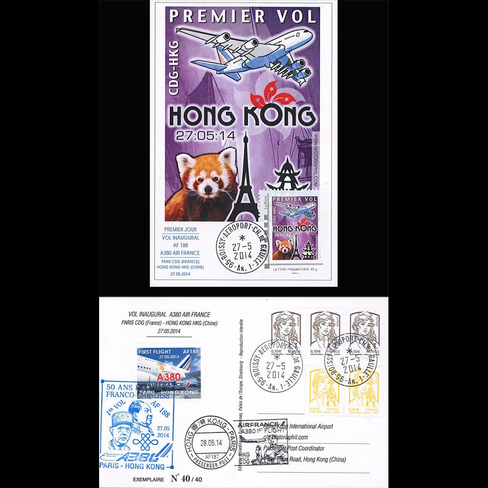 + vignette "27.5.2014 : Airbus A380 Air France - Premier Vol AF188 Paris-Hong Kong" au verso
