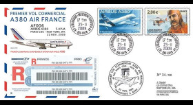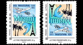 N°A380-288B4 : FRANCE Bloc de 4 valeurs Timbre-poste personnalisé (TPP) Monde 20g "1.12.2014 : Vol inaugural Airbus A380 Air France AF 090 Paris CDG (France) - Miami MIA (Etats-Unis)"