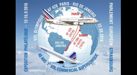 Des timbres-poste personnalisés, cachets et plis spéciaux franco-brésiliens ont été spécialement conçus par le studio graphique d’Historiaphil pour commémorer le “Vol Olympique Paris-Rio 2016“ et les “40 ans du premier vol commercial supersonique de Concorde“ effectué en 1976 sur cette même ligne. Un tirage limité de 240 documents aérophilatéliques a pu être transporté à bord, avec l’aimable participation du personnel navigant d’Air France qui a opéré le “Vol Olympique“.