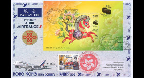 N°A380-300D : Maxi-FFC transportée à bord du “TINTIN -Vol Olympique A380 Air France AF 426 Paris - Rio et AF 427 Rio - Paris, 22-23.8.2016 / 40e anniversaire du 1er vol commercial supersonique de Concorde“ avec jumelage philatélique Belgique - Brésil.