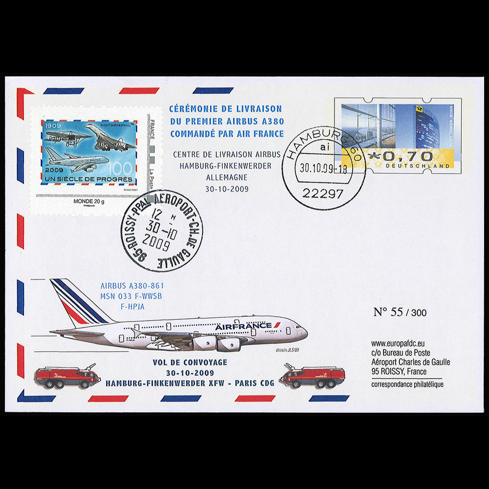 “Cérémonie de livraison et vol de convoyage Hamburg XFW - Paris CDG du premier Airbus A380 pour Air France (F-HPJA) 30.10.2009”