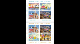 A380-302BD : Série de 2 feuillets de 8 vignettes “Vol inaugural A380 Lufthansa LH 772 / 773 BANGKOK (Thaïlande) - FRANCFORT (Allemagne) et retour 28-29.10.2017“