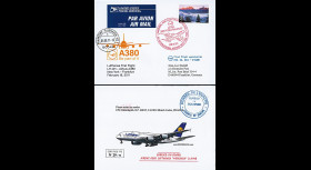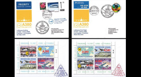 A380-302BND : Série de 2 feuillets de 8 vignettes “Vol inaugural A380 Lufthansa LH 772 / 773 BANGKOK (Thaïlande) - FRANCFORT (Allemagne) et retour 28-29.10.2017“