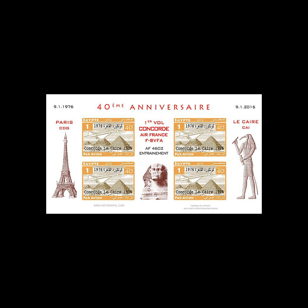 9.01.1976-2016 : Une série de 10 feuillets a été émise pour le 40e anniversaire du Premier Vol du CONCORDE F-BVFA AIR FRANCE Paris - Le Caire (Egypte) / Vol d’Entrainement AF 4602.