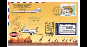 Un tirage de 110 plis “43e anniversaire vols tests Concorde G-AXDN en Afrique 1975/2018“ a été transporté à bord avec l’aimable concours du personnel navigant d’Air France.