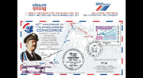 Un tirage de 110 plis “43e anniversaire vols tests Concorde G-AXDN en Afrique 1975/2018“ a été transporté à bord avec l’aimable concours du personnel navigant d’Air France.