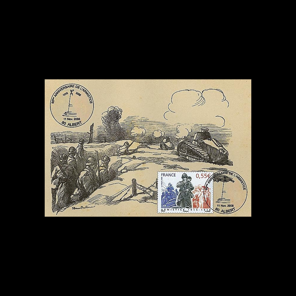 N°W1 08-12CP : Carte maximum "Char d'assaut Renault sur les champs de bataille" Illustration : composition de Berne-Bellecourt 0,55 EUR "Armistice 1918-2008"