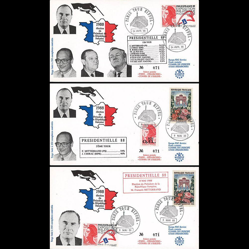 N°PRES88-1/3 : Série de 3 FDC "Election présidentielle de 1988"