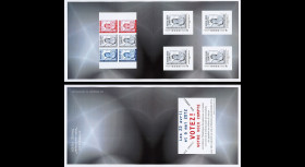 + bande de 5 vignettes dentelées "5 principaux candidats sortants : Mme Marine LE PEN, M. Nicolas SARKOZY, M. Jean-Luc MELENCHON, M. François BAYROU et M. François HOLLANDE"