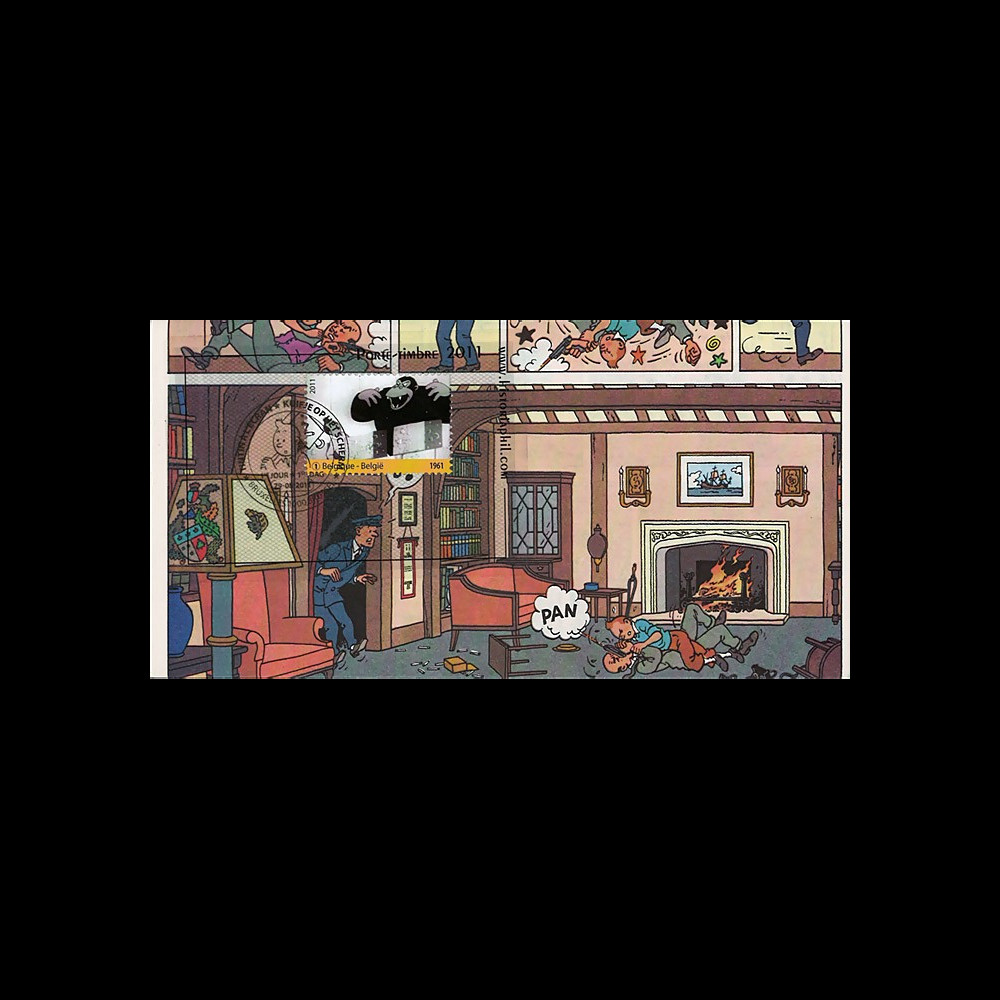 N°TIN11PJ-INT5 : FDC BELGIQUE issue de l'album Tintin et l'Ile Noire "29.08.2011 : 1er Jour TINTIN à l'ECRAN - TINTIN et L'Ile Noire" (TYPE 5) :