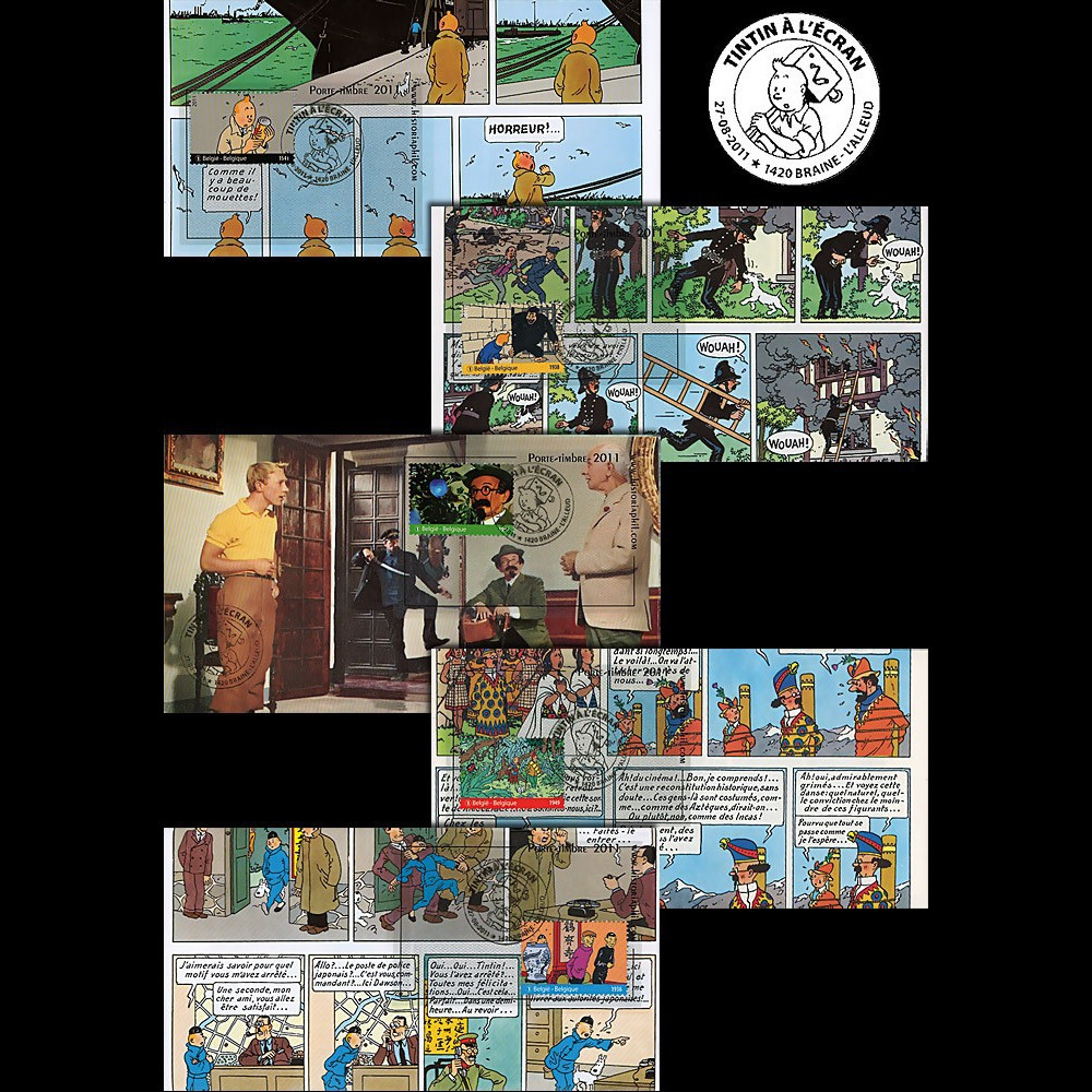 Cette grande aventure de Tintin au cinéma est commémorée cette année par la Belgique avec l’émission d’un bloc-feuillet de 10 timbres-poste «Tintin à l’écran» associée à deux oblitérations spéciales : le cachet de prévente de Braine-L’Alleud daté du 27.08.2011, pour information le nom du fameux château de « Moulinsart » a été inventé par Hergé en inversant le nom d'un hameau de Braine-l'Alleud, Sart-Moulin, situé au sud de Bruxelles, et le cachet Premier Jour de Bruxelles du 29.08.2011.