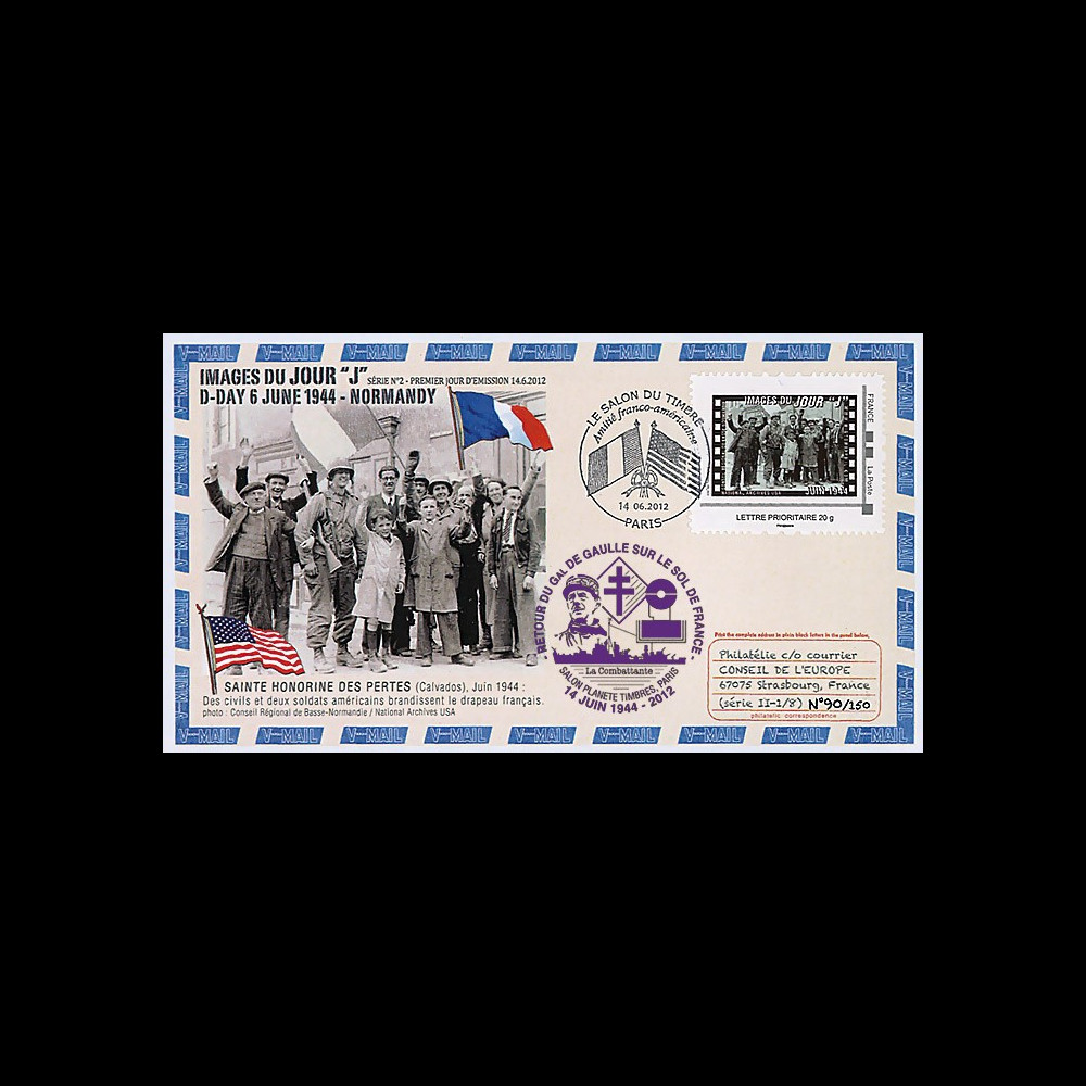 IMAGES DU JOUR “J“ - JUIN 1944 / 14.06.2012 : Premier Jour d'Émission SALON DU TIMBRE - Amitié franco-américaine / 14.06.2012 : Commémoration du 68e anniversaire du Retour du Général de Gaulle sur le sol de France, Normandie :