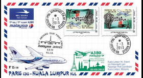 A380-216 : 2013 - FFC FRANCE "Airbus A380 Malaysia Airlines - 1er Vol Paris-Kuala Lumpur" Prix 12,00 €
