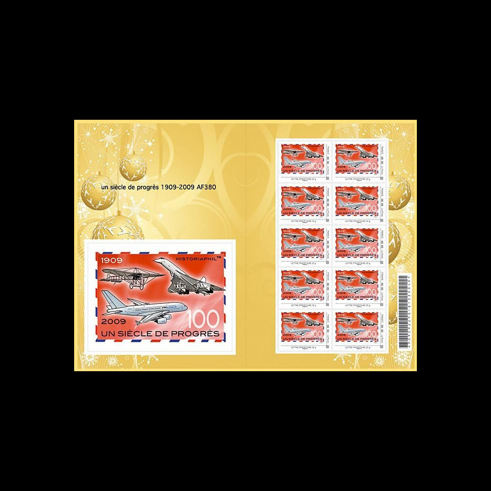 N°A380-85F1 : Timbres personnalisés FRANCE Avions Blériot, Concorde et A380 '1909-2009 Un Siècle de Progrès'