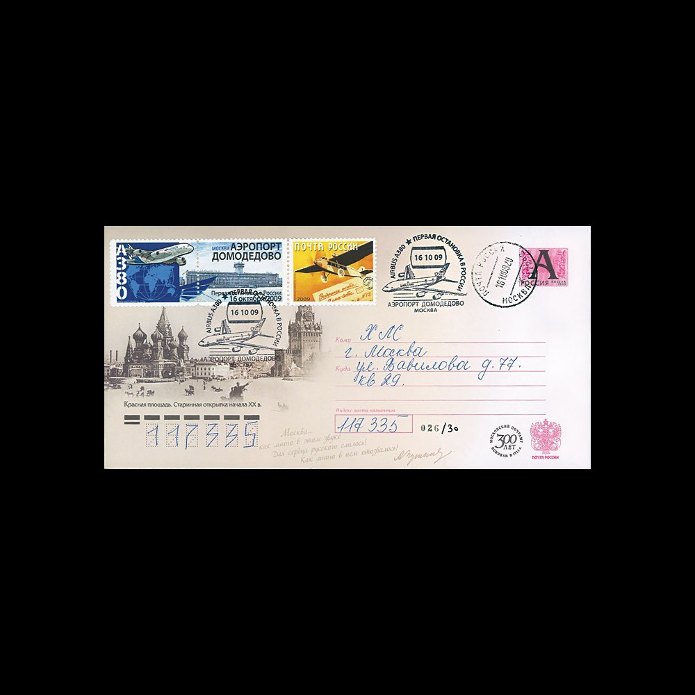 oblitération cachet illustré “A380 Aéroport Moscou-Domodedovo“ 16.10.09