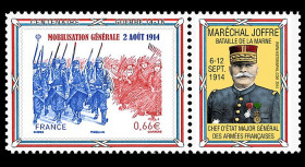 + affrt. compl. France 0,66€ "Centenaire de la Mobilisation Générale, 2014" oblit. Morvillars "1er Jour - Mobilisation Générale" 02.8.2014