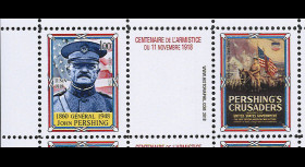 CENT18-5PTF : 2018 France feuille entière (A4) de 12 triptyques de vignettes porte-timbres privés, dentelés et gommés “Centenaire Armistice 1918-2018 / Général John Pershing, commandant du Corps Expéditionnaire Américain AEF“
