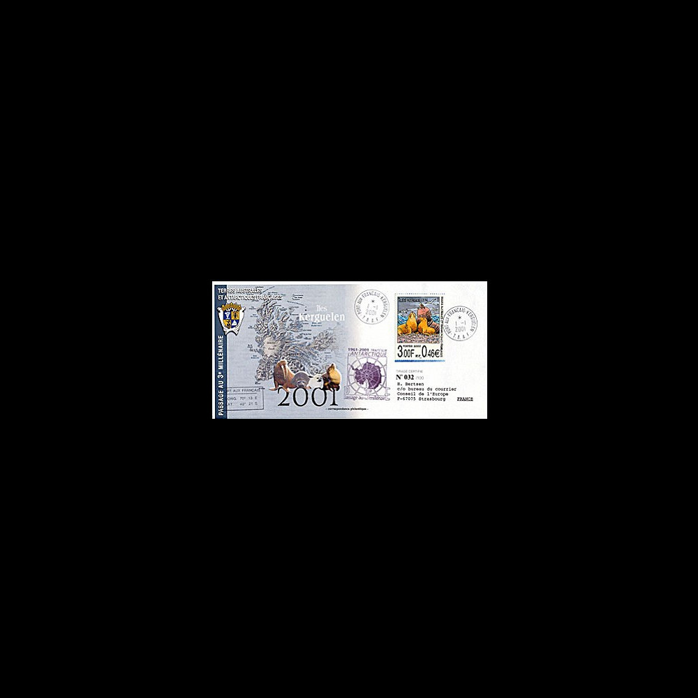 Le 1er janvier 2001 nous entrions dans le Troisième Millénaire. Pour marquer cette date historique, nous avons posté depuis trois districts des Terres Australes et Antarctiques Françaises (St Paul et Amsterdam, Kerguelen, Crozet) trois superbes plis, réalisés pour la circonstance en tirage limité à 100 exemplaires numérotés.