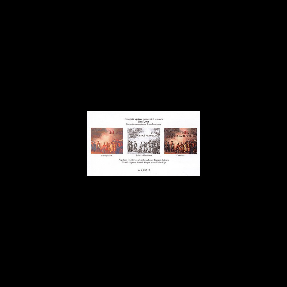 Epreuve de luxe essai de couleurs bloc «Napoléon à Austerlitz - Louis-François Lejeune» émise par les Postes Tchèques pour l'Exposition européenne de timbres-poste BRNO 2005. Rare!