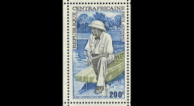 N°SCHW74-CENTF : Centrafrique 1975 - Feuillet entier numéroté avec coin daté 10 x 200F Poste Aérienne “Centenaire de la Naissance du Dr. Albert Schweitzer”