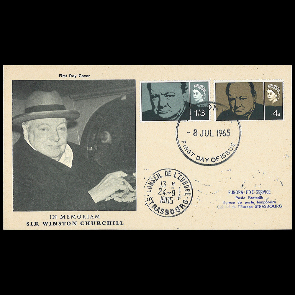 N°CHUR65-GB : Grande-Bretagne 1965 - FDC 2 val. “In Memoriam - Décès de Sir W. Churchill (1874-1965)“