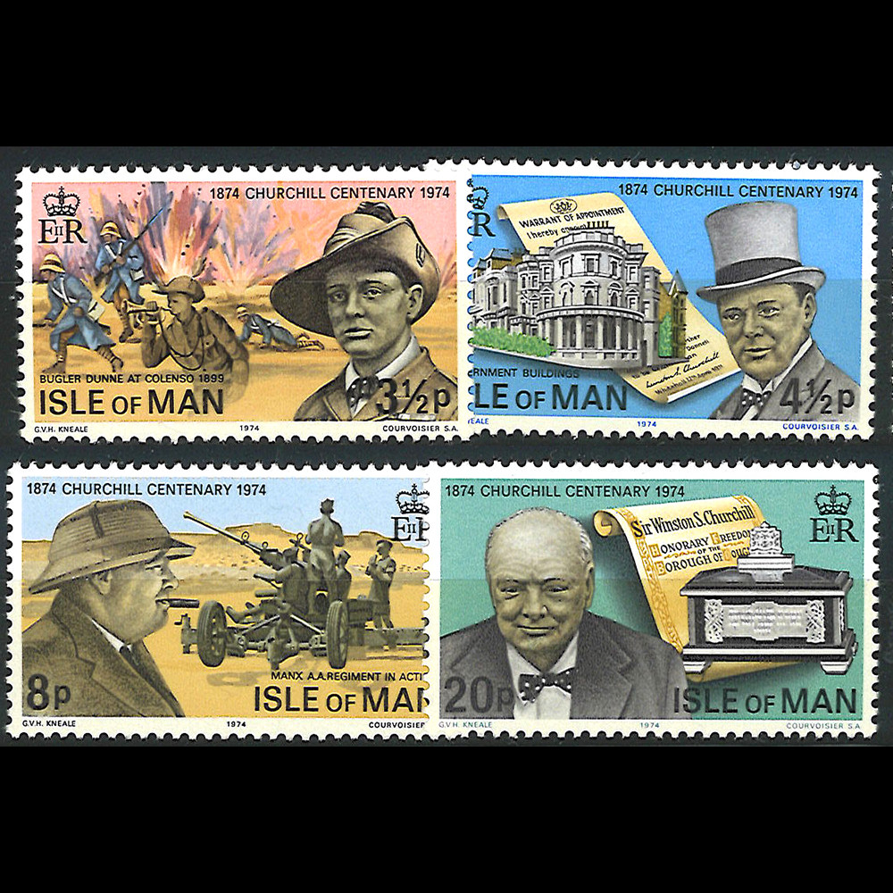 N°CHUR74-MANN : ISLE OF MAN (GB) 1974 - 4 val. “Centenaire de la naissance de W. Churchill, Premier Ministre , Guerre 1939-1945 (1874-1965)“
