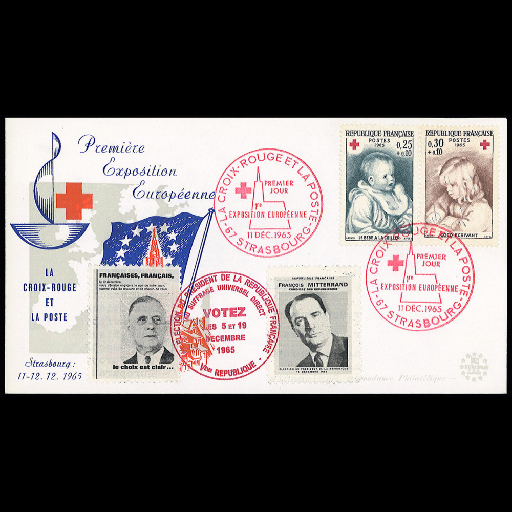 - oblitération illustrée Premier Jour Strasbourg "1ère Exposition Européenne de la Croix Rouge et de la Poste" 11.12.1965