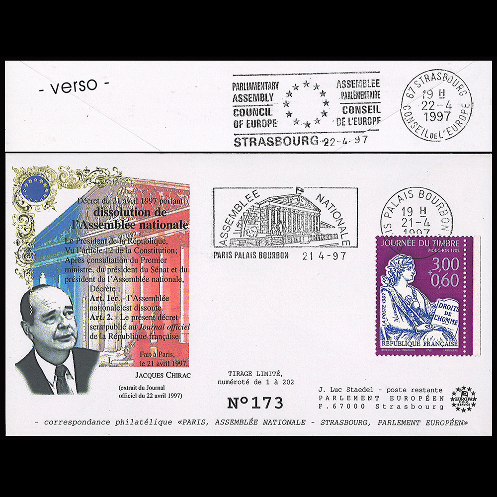 - Oblitération flamme Paris Palais Bourbon "Assemblée Nationale" (France) 21.04.1997
