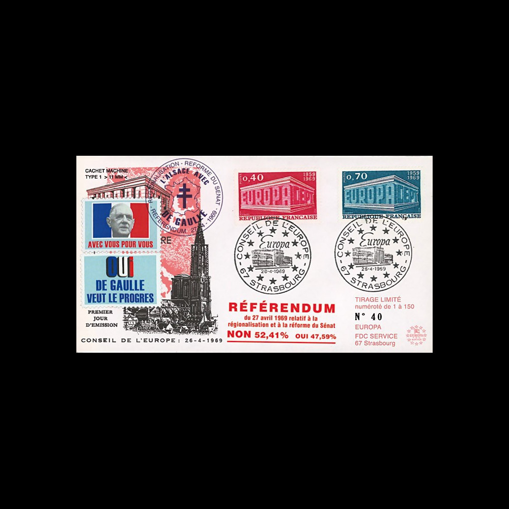 N°EU56B-DG : FDC "Europa 69, TYPE CACHET MACHINE 1 / de Gaulle - Référendum du 27 avril".