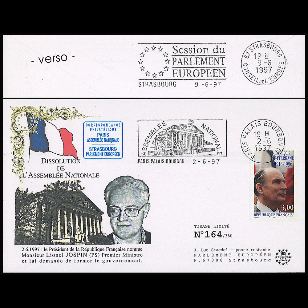 - Oblitération flamme Paris Palais Bourbon "Assemblée Nationale" 02.06.1997