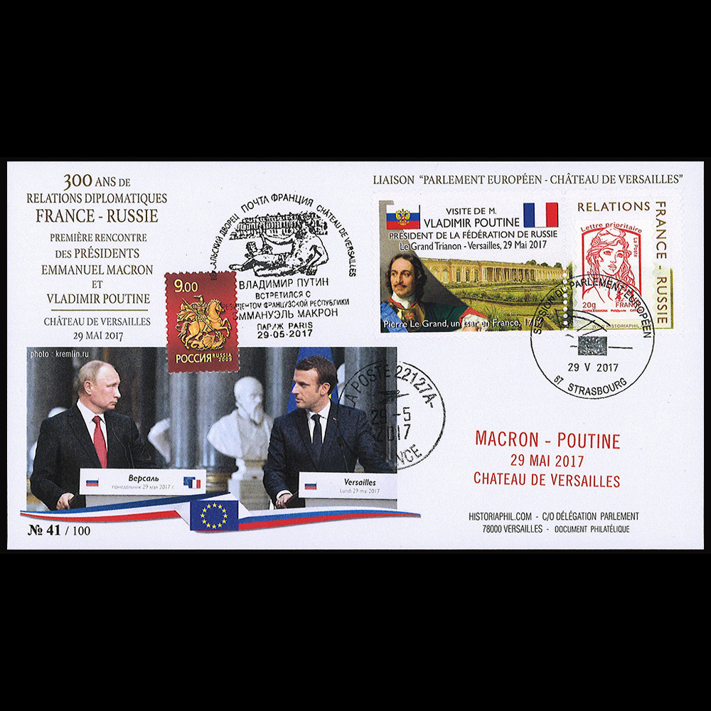 - Oblitération illustrée (russe) “Poutine - Macron, Château de Versailles - Paris 29-05.2017“