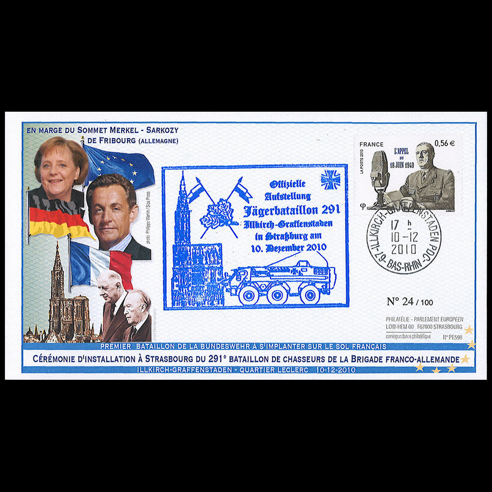 Le “Jägerbataillon 291“ de la Brigade franco-allemande a officiellement été installé sur le territoire français, vendredi 10 décembre 2010 à Strasbourg, en présence des ministres de la Défense des deux pays. Il s'agit d'une première depuis 1945, qui marque un nouveau pas dans la coopération franco-allemande