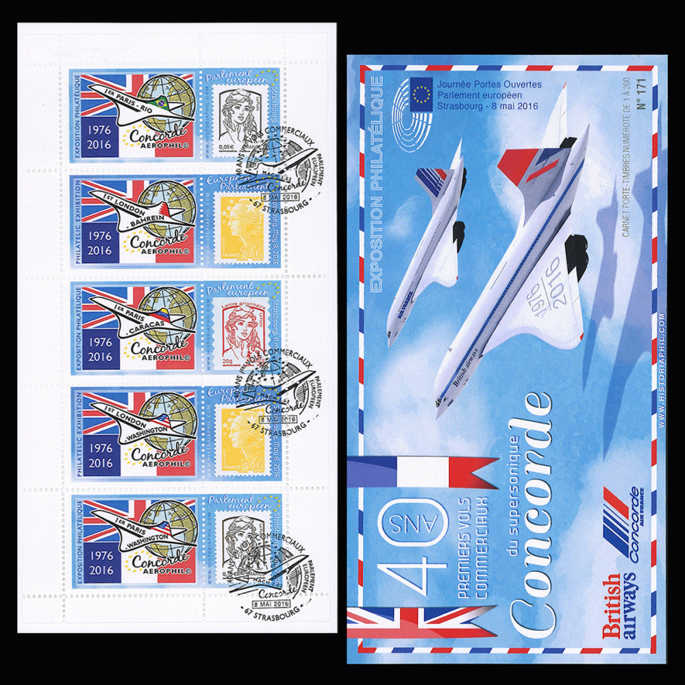 Dans le cadre du 40e anniversaire des premiers vols commerciaux du supersonique franco-britannique Concorde, Historiaphil (Editions Philatéliques Européennes), avec le soutien du Parlement européen, de La Poste et de l’Association philatélique UNION 1877, présentent une exposition philatélique temporaire durant la journée des Portes Ouvertes du Parlement européen de Strasbourg ce 8 mai 2016, prolongée lors de la session plénière du 9 au 12 mai 2016. Elle est intitulée “il y a 40 ans, CONCORDE faisait entrer l’Europe dans l’ère de l’aviation commerciale supersonique (1976-2016)“.