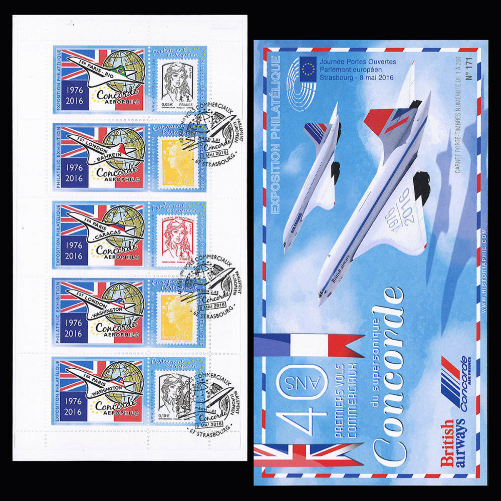 Dans le cadre du 40e anniversaire des premiers vols commerciaux du supersonique franco-britannique Concorde, Historiaphil (Editions Philatéliques Européennes), avec le soutien du Parlement européen, de La Poste et de l’Association philatélique UNION 1877, présentent une exposition philatélique temporaire durant la journée des Portes Ouvertes du Parlement européen de Strasbourg ce 8 mai 2016, prolongée lors de la session plénière du 9 au 12 mai 2016. Elle est intitulée “il y a 40 ans, CONCORDE faisait entrer l’Europe dans l’ère de l’aviation commerciale supersonique (1976-2016)“.