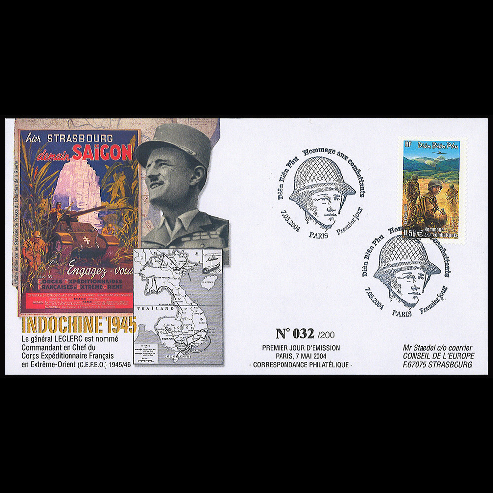 - Oblitération Paris “Diên Biên Phu - Hommage aux Combattants - Premier Jour" 07.05.2004 (Cérémonie aux Invalides, Paris)