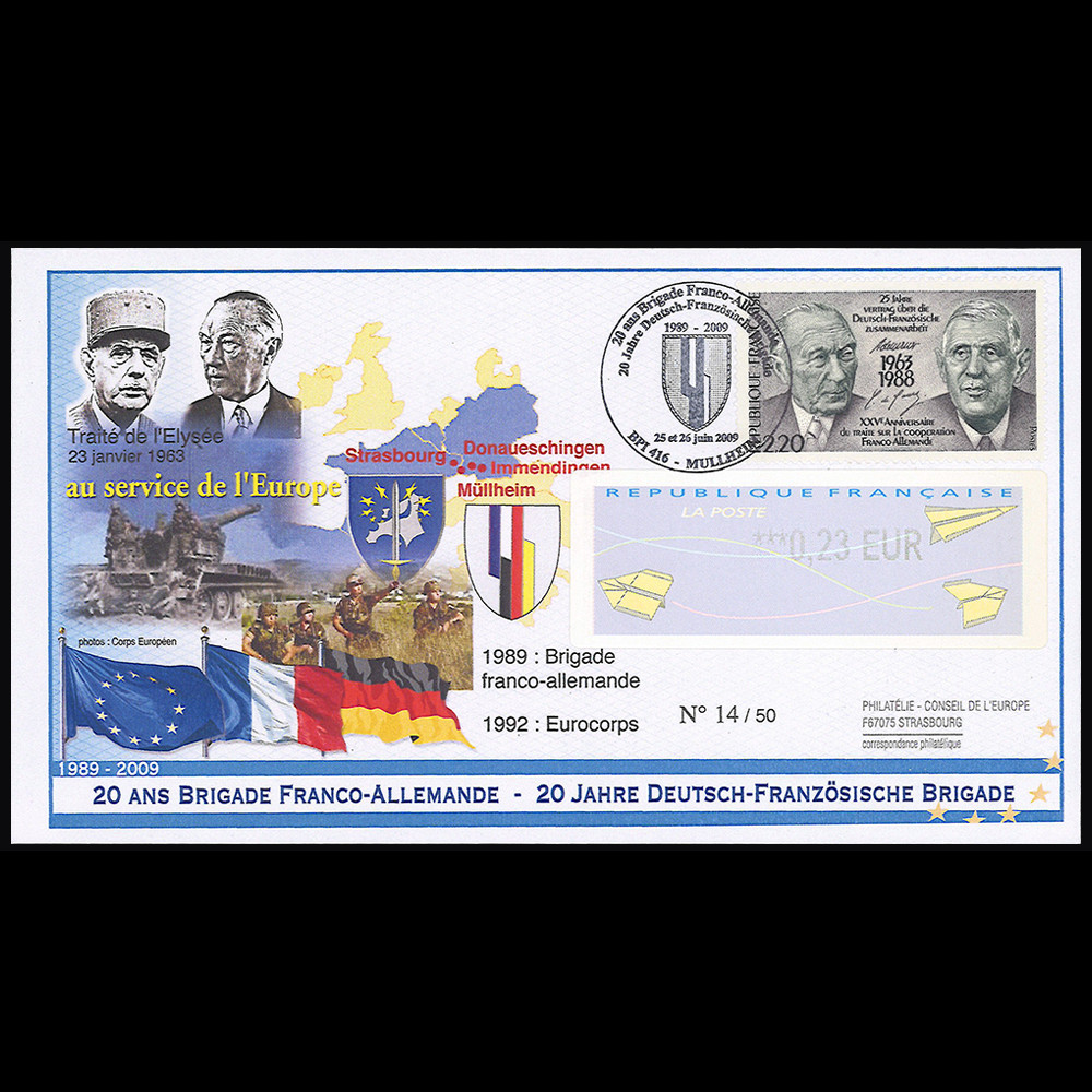 oblitération GF Müllheim BPI 416 (Bureau postal militaire français en Allemagne) "20 ans Brigade Franco-allemande" 25-26.6.2009