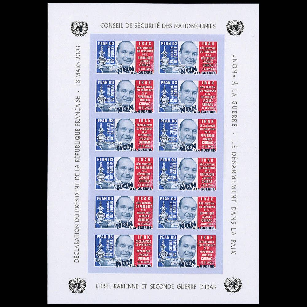 ONU, 18 Mars 2003 : à travers la parole de son ministre des affaires étrangères Dominique de Villepin, le Président Jacques Chirac appelle lui-même à