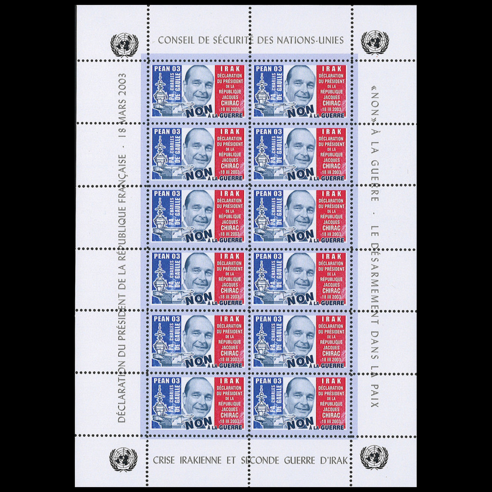 ONU, 18 Mars 2003 : à travers la parole de son ministre des affaires étrangères Dominique de Villepin, le Président Jacques Chirac appelle lui-même à