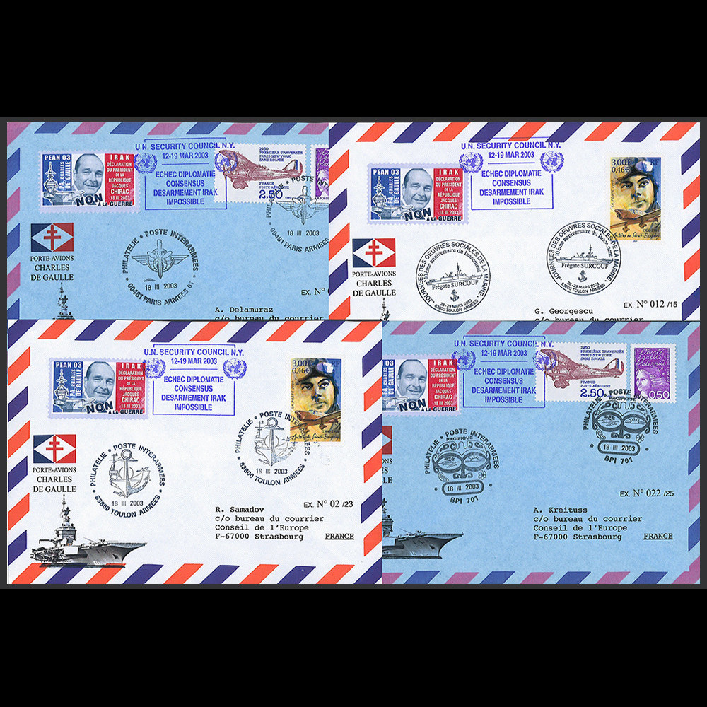 + vignette militaire “ONU - Déclaration Chirac : NON à la guerre en Irak - PA Ch. de Gaulle, PEAN 03