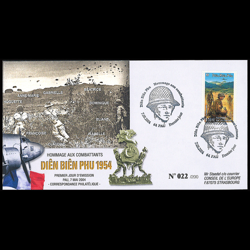 - Oblitération Pau (France) “Diên Biên Phu - Hommage aux Combattants - Premier Jour" 07.05.2004 (1er Régiment de Chasseurs Parachutistes)