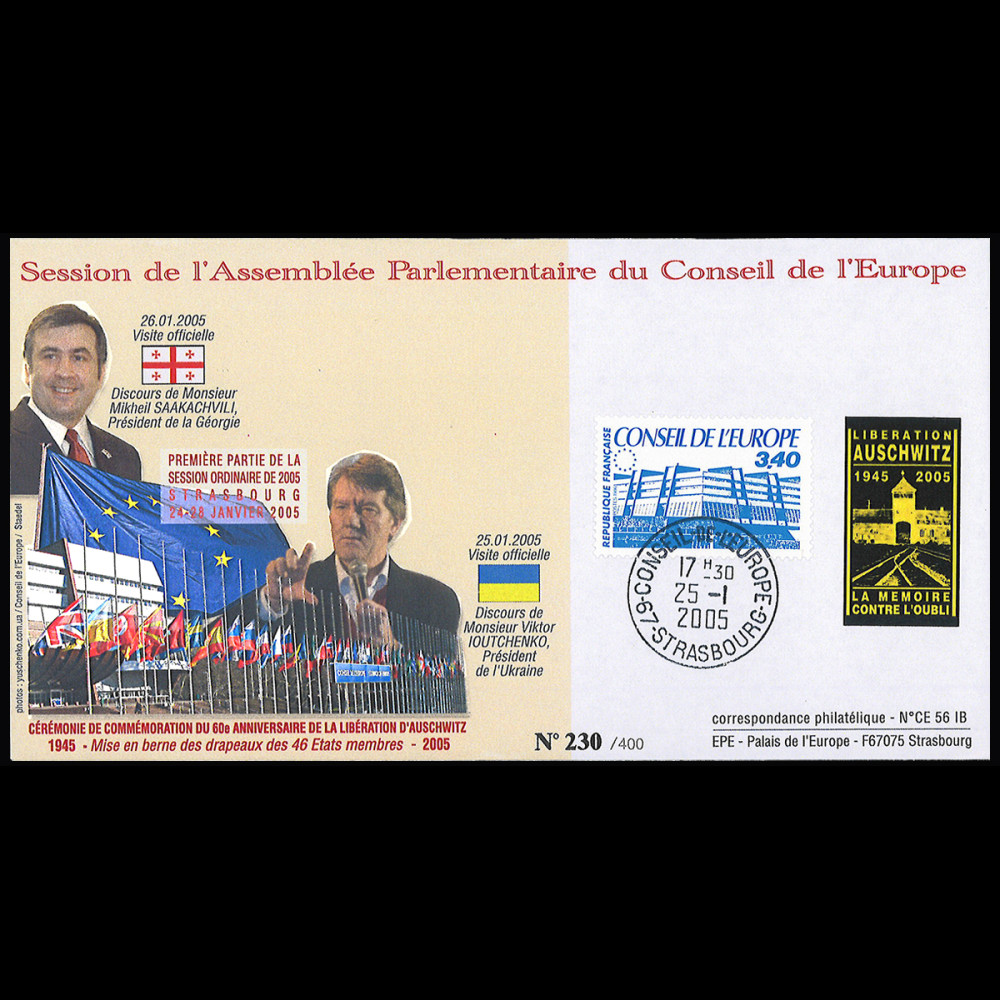 Affranchissement TYPE 2 : France 1 valeur 3,40F "Conseil de l'Europe, 1986" oblitération tàd Strasbourg "Conseil de l'Europe" 25.1.2005