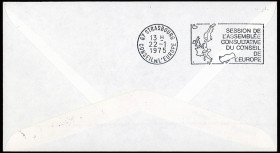 - Cachet d'arrivée au verso: flamme illustrée "Strasbourg Session de l'Assemblée Consultative du Conseil de l'Europe (SANS CARTE DE LA GRÈCE) 22.01.1975"