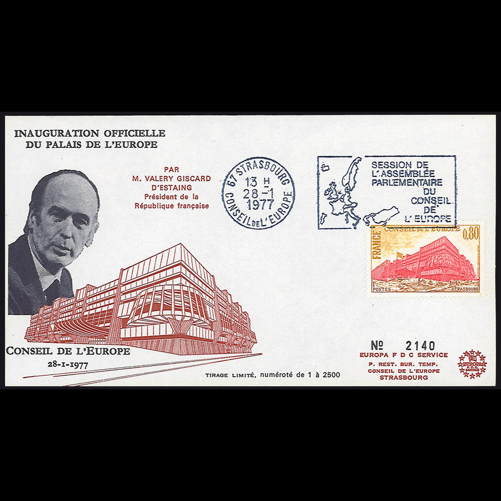 Dans son discours du 28 janvier 1977, prononcé à l'occasion de l'inauguration du Palais de l'Europe, Valéry Giscard d'Estaing, Président de la République française, évoque les circonstances de la construction du nouveau bâtiment (conçu par l'architecte Henry Bernard, Grand Prix de Rome) et rappelle la vocation du Palais d'être le siège du Conseil de l'Europe et notamment de recevoir l'Assemblée de cette organisation, mais aussi le Parlement des Communautés européennes lors de ses sessions de Strasbourg.