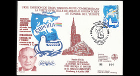 + cachet d'arrivée Strasbourg Conseil de l’Europe 6.7.1989 (visite Gorbatchev) verso