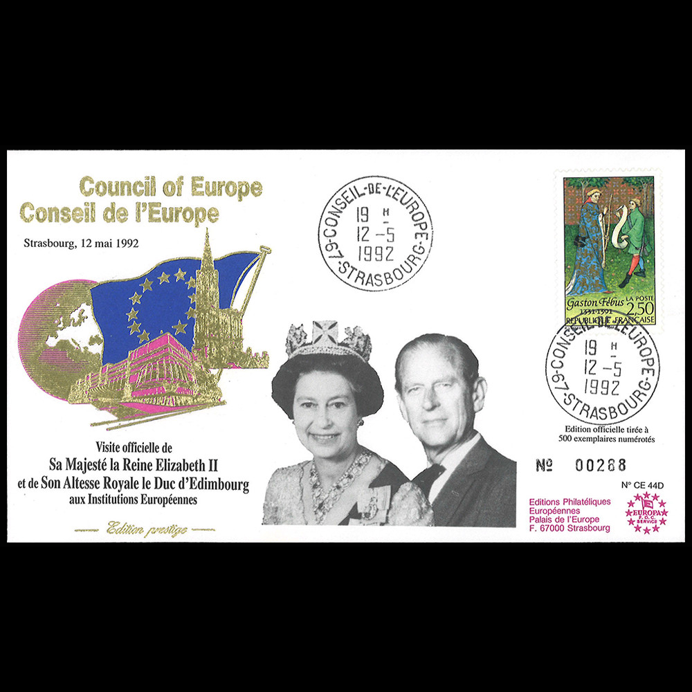 Affranchissement (TYPE2) France 2,50F "Gaston Fébus 1331-1391" oblitération tàd Strasbourg "Conseil de l'Europe" 12.05.1992