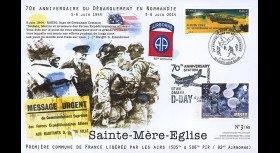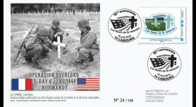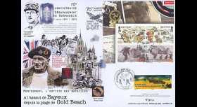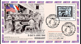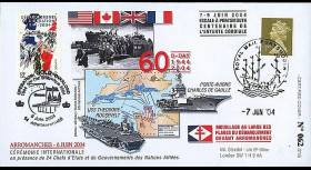 N°DEB09-8 : Pli spécial '7e Brigade d'Infanterie canadienne - Juno - retour du général de Gaulle' affrt. mixte 2,80F 'de Gaulle, la Victoire 1995' et 0,10 EUR 'Marianne et l'Europe 2009' oblit. GF Courseulles-sur-Mer 'JUNO' 5-6.6.09