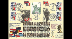 + affranchissement complémentaire France bloc de 2 valeurs 2,00F + 3,00F "Retour à la PAIX & Retour à la LIBERTE, 1985" oblit. GF Cherbourg-Octeville "60 ans de la Libération" 26.6.2004