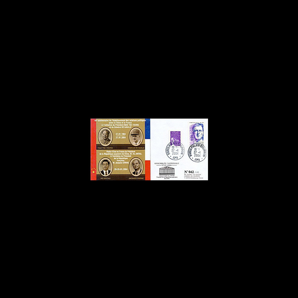 N°AN 03CH1: Pli spécial «visite d'Etat du président chinois» et «40e anniversaire des relations franco-chinoises à l'initiative du Président MAO TSÉ-TOUNG et du Général de GAULLE» - TP «Centenaire de Gaulle» + «Marianne»